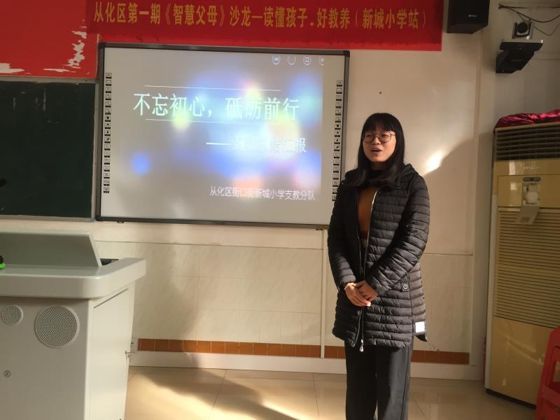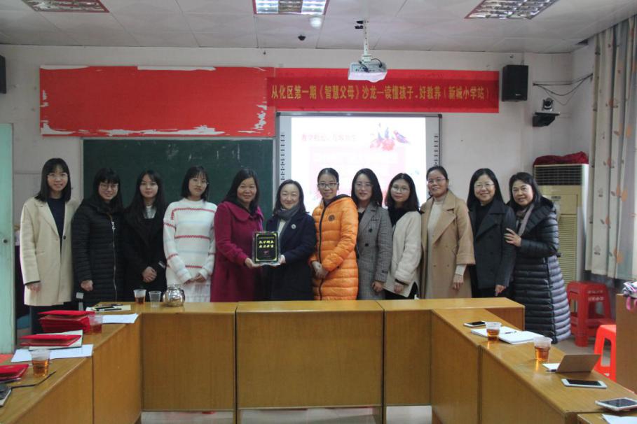 教务办周文暖老师,从化区街口街新城小学邝卫华校长、周婉玲副校长、教导处黄丁群主任以及从化片区的三所学校的实习支教生。