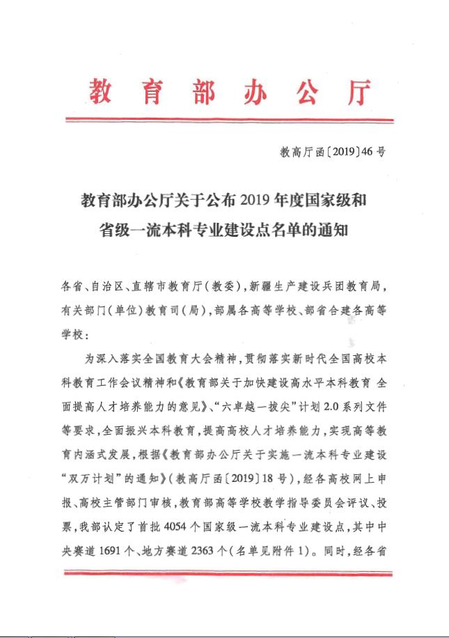 近日,教育部发布了《教育部办公厅关于公布2019年度国家级和省级一流本科专业建设点名单的通知》,51吃瓜网
