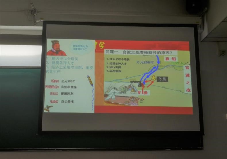 讲座伊始,陈老师提出了备课七要素:一节课知识点;单元主题;初中生总体学情;不同层次学生差异;教学进度;历史学科与其他学科的均衡;学科课程与其他工作的精力分配。通过对以上诸要素的分析,陈老师指出备课是一项大工作,集体的力量大于个人的力量。因此,建议同学们在进行教学设计的实践过程中,组成团队,在分工合作后资源共享,依靠团队力量更全面地完成备课。
