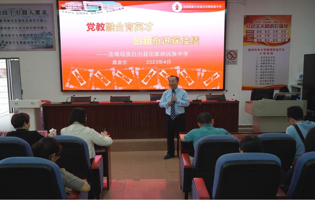 13日下午我校三学院党员代表与连南田家炳民族中学党员代表在至善报告厅开展了一堂别具特色的联合主题党日活动,党的二十大代表连南田家炳民族中学党总支书记、校长盘金生主持了本次活动,并以《为党育人 为国育才 办好人民满意的教育》为主题开展了一次学习贯彻党的二十大精神的理论宣讲。“如何办好人民满意的教育,是我们广大基层教育工作者的一道必答题。”盘金生校长在宣讲时强调,要深入基层倾听、反映群众所思所想,并将党的二十大精神在基层传达好贯彻好,是他作为一名党的二十大代表的职责使命。